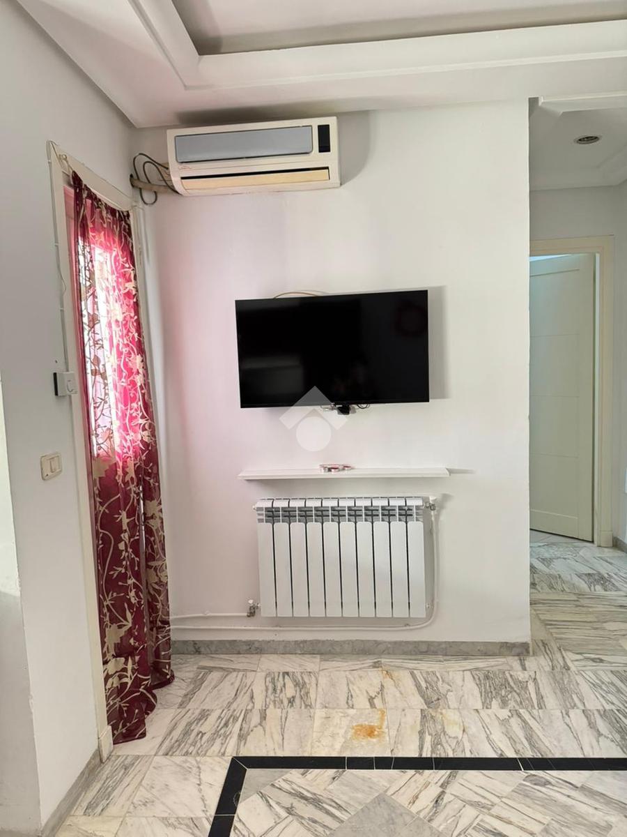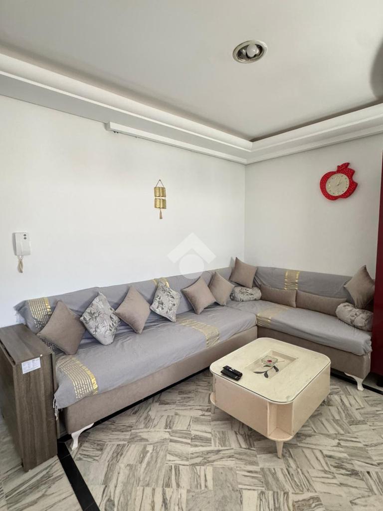 À l'entrée on découvre un salon lumineux .