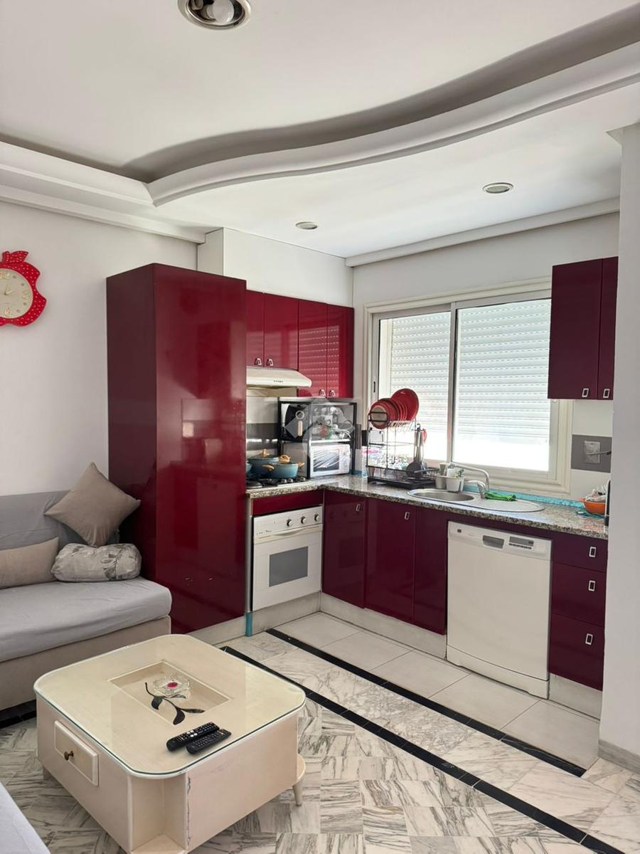 La cuisine est équipée par des éléments de rangements nécessaires.