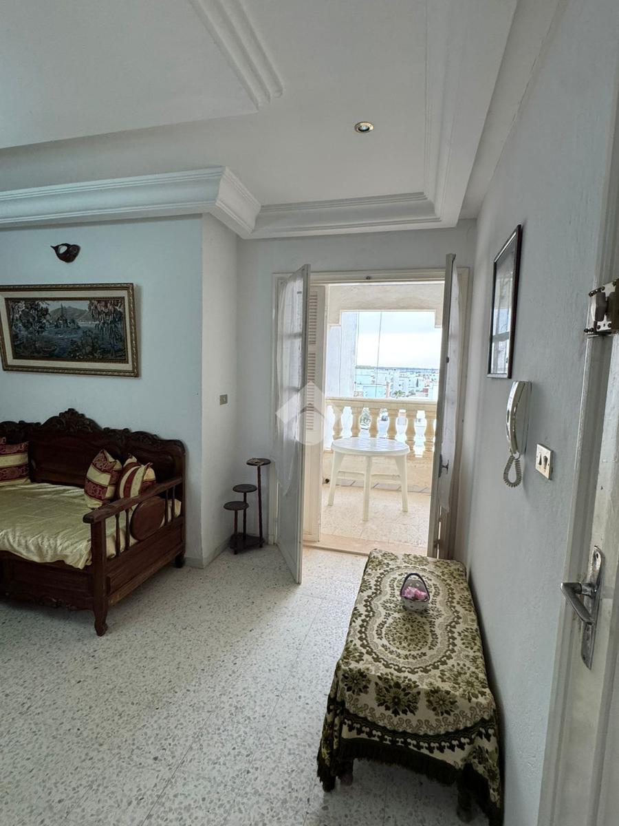 À l'entrée on découvre un salon lumineux grâce à son balcon .