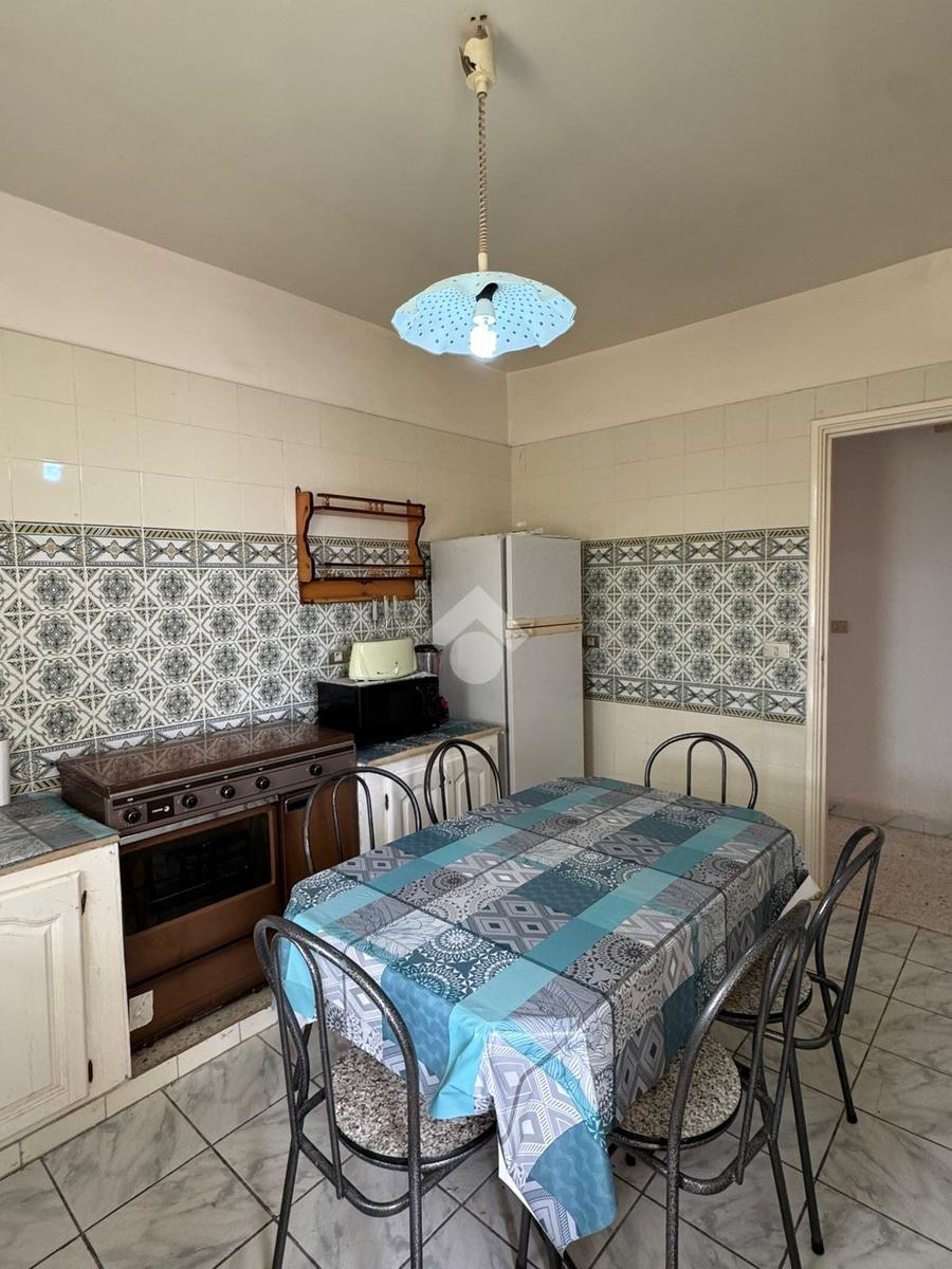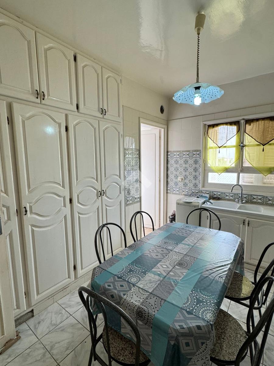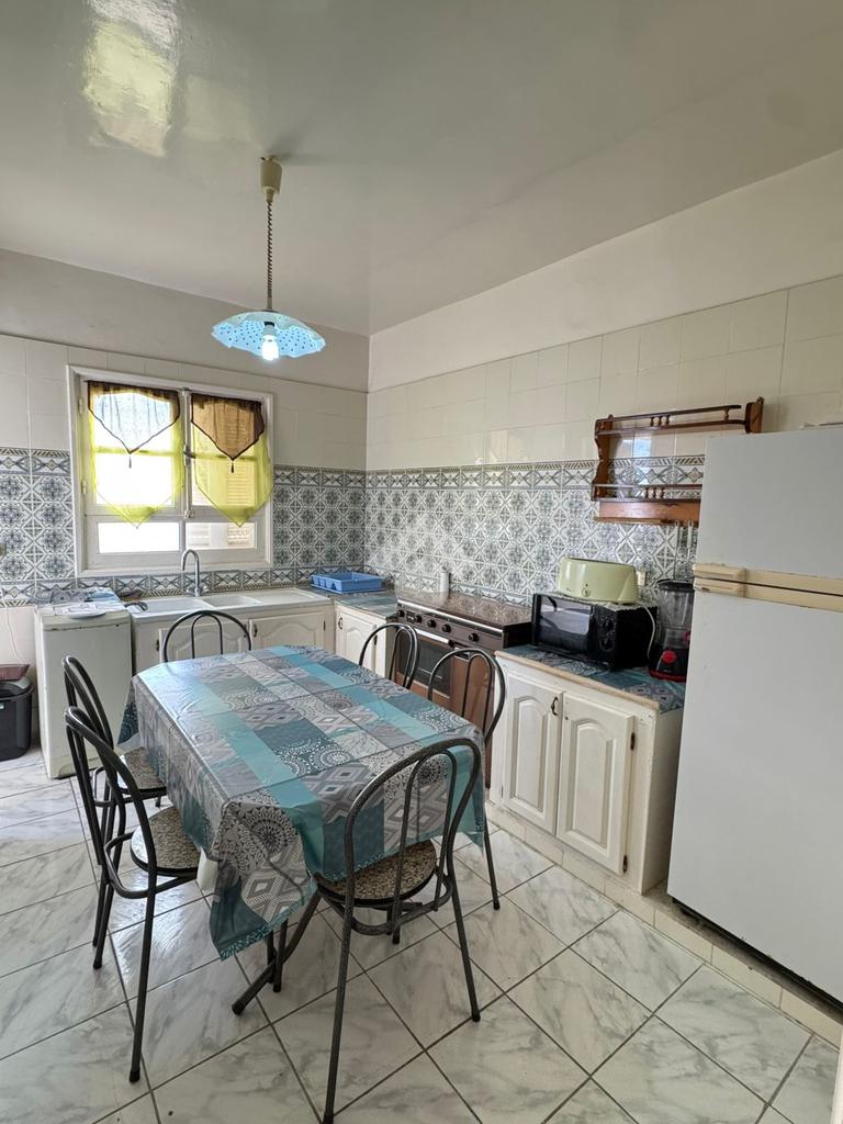 La cuisine est équipée par des éléments de rangement fonctionnels.